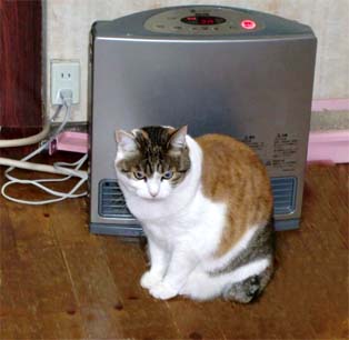 また、寒くなってきました。朝、起きてストーブを付けたら、暖まりに現れました。
