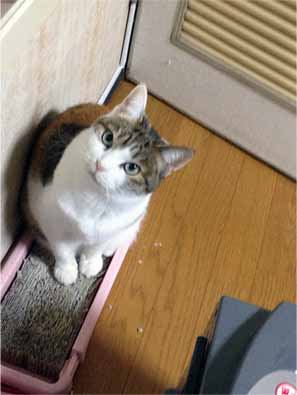 朝の日課の爪研ぎです