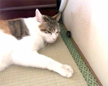 セミが動かず、バニラもちょっかい出せず