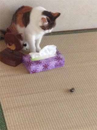 バニラは和室から奥に入れてもらえません、仕方なく自分で遊んでいます。