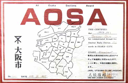 WAJA(Worked All Japan prefectures Award) 日本国内の1都1道2府43県のアマチュア局と交信し、 QSLカードをそれぞれの都道府県のアマチュア局から各1枚得る。 |