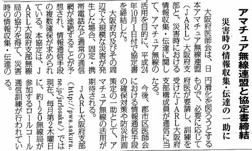 アマチュア無線による災害時応援協定 2012.03.252009.11.01 府医ニュース |