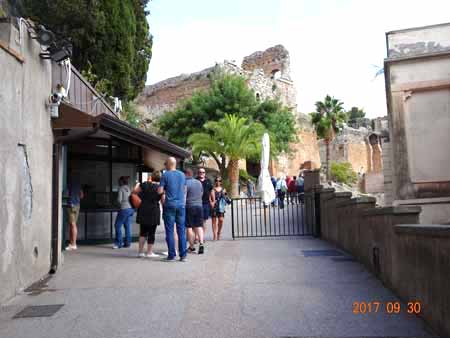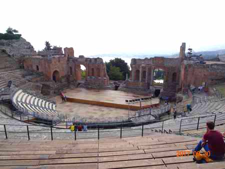 | イソラベッラから再度ロープウエィでもどり、ギリシャ劇場に向かった。 |