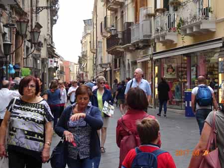 ウンベルト通り(ウンベルト1世通り)は、メッシーナ門からカターニア門までのタオルミーナのメインストリート。