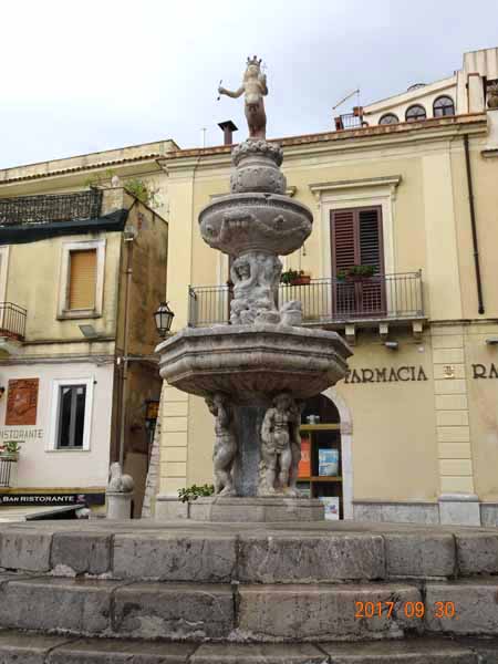 噴水の一番上に飾られているのは、ケンタウロスの像で、タオルミーナの紋章でもある。