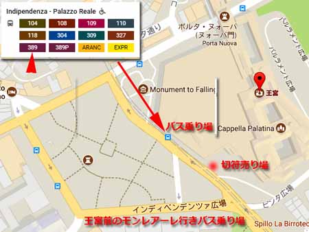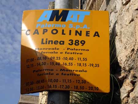 モンレアーレへはノルマン王宮のバス停から389番のバスに乗れと地球の歩き方に書いてあった。