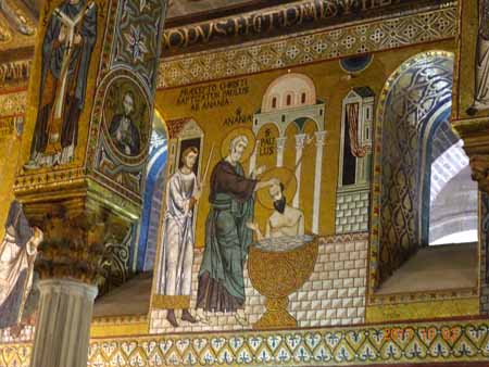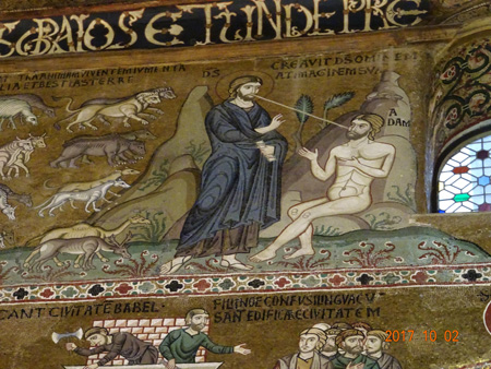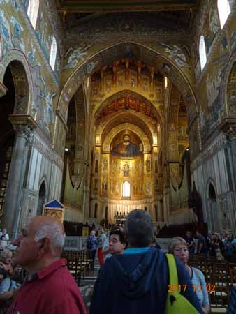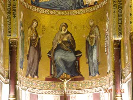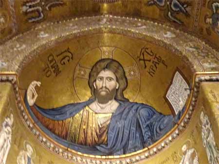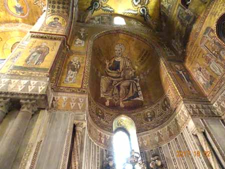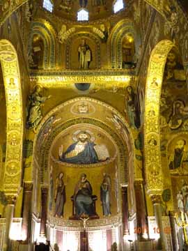 | モンレアーレ大聖堂とパラティーナ礼拝堂は大きさはかなり違うが、モザイクの図柄はとてもよく似ている。 |