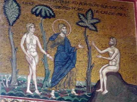 旧約聖書の「エデンの園のアダムとイブ」 |