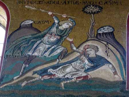 | 身廊のモザイク絵は創世記から始まり、旧約聖書におけるキリストとその贖罪、キリストの降臨を予言し、その準備をした人々の絵が描かれている。下段と内陣周辺には新約聖書に基づく挿話が描かれており、キリストがもたらした奇跡と受難や、使徒、福音伝道者、その他の聖人が題材となっている。 |
