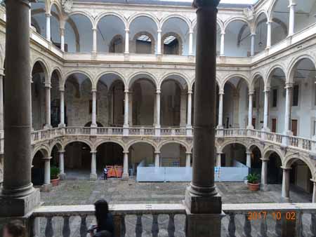マクエダ(cortile maqueda)の中庭、パラティーナ礼拝堂の入口はこの中庭の2階にある。