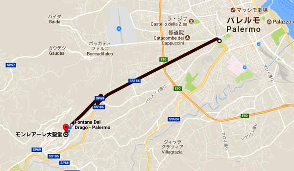 今日はモンレアーレの大聖堂を見に行くことにした。モンレアーレはパレルモ郊外の標高310mのプート山にある。