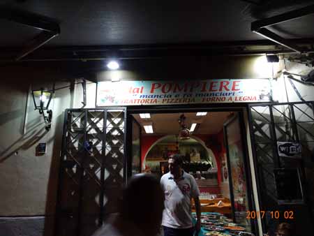 午後6時頃になり、雨がやんだので今日の夕食はマッシモ劇場の正面の通りの小さなレストランがあるところに出かけた。 |