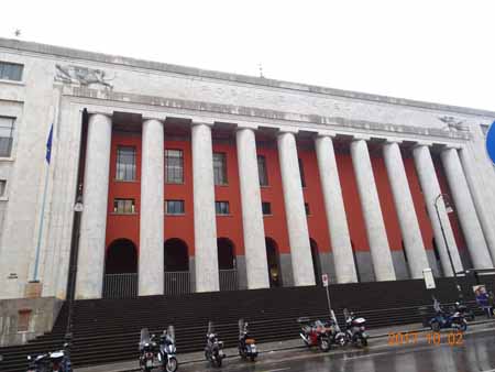 ( 1931年)でこの建物に取りつけていた大きなクレーンが強風で倒れ近隣の建物が倒壊しました。さらに1988年に火災で被害を受け、修復作業が行われた。建物スタイルはファシスト期の典型で、