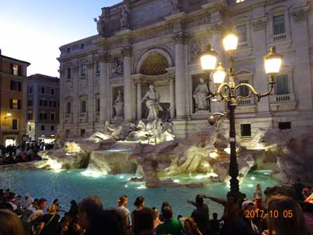 やっぱり、ローマに来たんだから、どこか見物にと考え、夕食の前にトレビの泉まで出かけてみました。