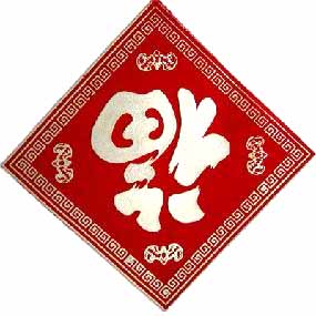 「福」の文字は現在「幸福」の意味で使用されることが多いが、倒福では「福気・福運」の意味で使用されている。