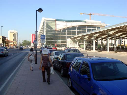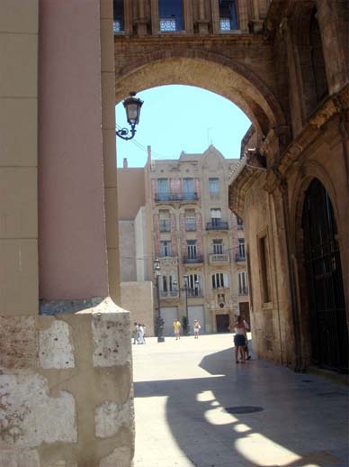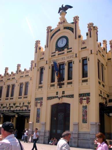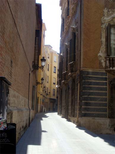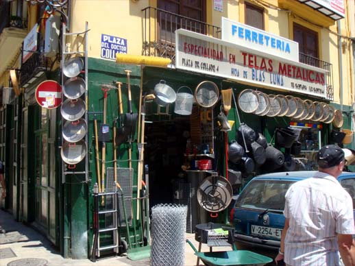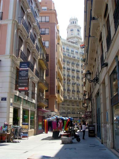 それでデジカメで車内や車外の景色を撮すのはあきらめた。(残念!) 1時間半くらいでバレンシア駅に着いた。この駅はカステジョンと違ってクラッシクな駅だった。 駅前を過ぎて、日差しを避けるため裏通りを通っていった。小物を売る店があり、土産物でなく、地元の生産物を売っている店もあった。