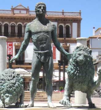 ヘラクレスはライオンをやっつけて皮を剥いだというギリシャ神話がある。この像はアンダルシアの州旗と同じ