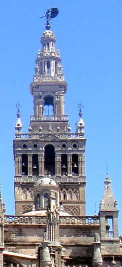 ヒラルダの塔 はもとはモスクのミナレット尖塔だったが、上の部分を付け足してキリスト教の鐘楼に改築したもの。