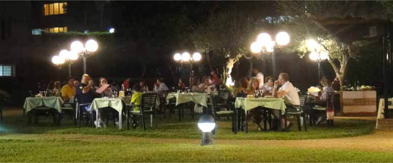 ホテルの庭にレストラン、食後にここでコーヒーを飲んだ