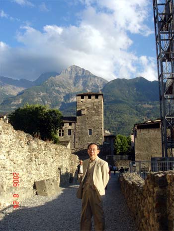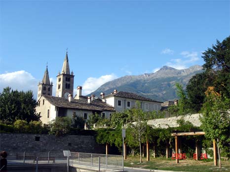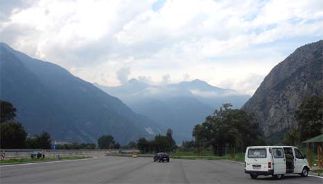 アオスタ渓谷と言うとおり、道路の両側に山が迫っている。 |