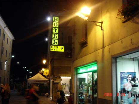 インフォメーションで町の中で駐車場のあるホテルをというと”BUS”というホテルを紹介してくれた。