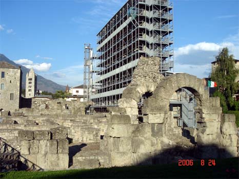 アオスタ案内図 ②アウグストの凱旋門 ④プレトリア門 ⑤ローマ劇場跡 ⑦大聖堂 ⑭市庁舎 |