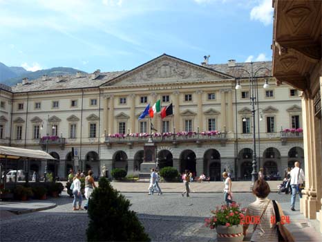 アオスタに到着、公園の横の駐車場に車を置き、市庁舎にあるインフォーメーションに向かった。