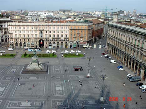 ドーモ前の広場のヴィットリオ・エマヌエーレ2世の銅像