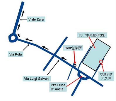 午前中はミラノ市内を観光して、午後から中央駅のHerzでレンタカーを借りてアオスタに向かう予定であった。