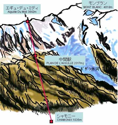 ここから中間駅プラン・ド・レギーユ(Plan de l'Aigulle)