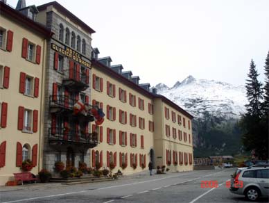 フルカ峠の手前でホテルが左手に見えた。