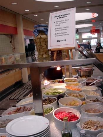 カフェテリア形式のサラダバーは重量で値段が決まる。