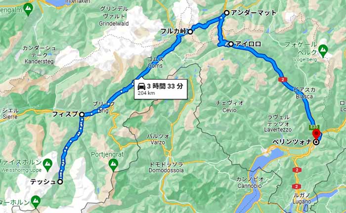 | ツェルマット→フルカ峠→ベリンゾーナ |