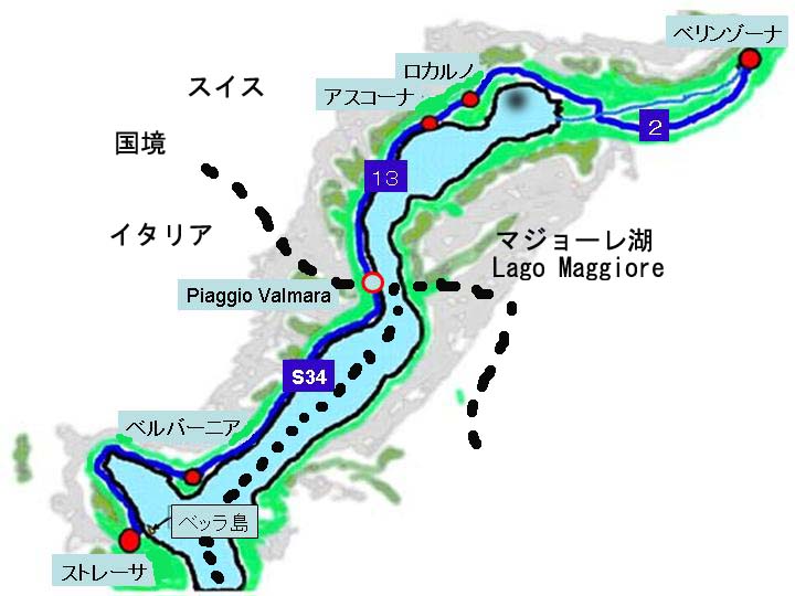 マジョーレ湖は面積212平方キロ、南北の長さが64Km、最大深度は372m。