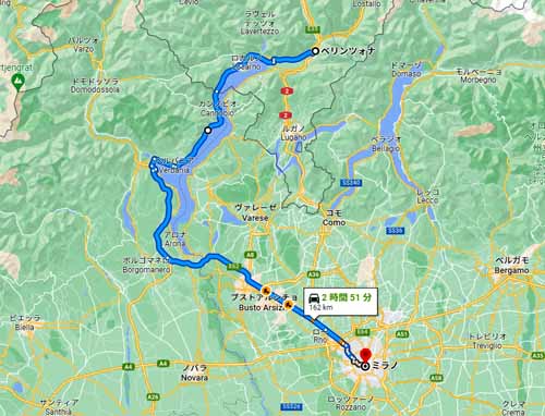 ベリンゾーナ→ミラノ走行図 |