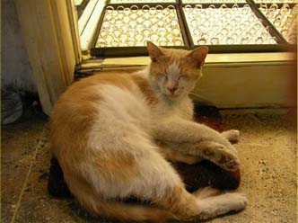 店の人に敷物をおいてもらっているようで人通り多いのに平気で寝ている。