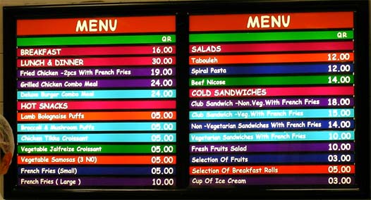 ドーハ国際空港では乗り継ぎ待ちが5時間を超えると食事のサービスがある。