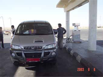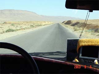 給油所を後に砂漠の中の道路を走る。