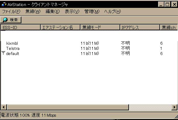 19:海外でのフリースポット 関空で無線LANを試してみた。コンピュータは東芝のリブレット、LANカードはメルコのWLI-PCM-L11Gを使用した。クライアントマネージャーを起動して検索しみたところ下の画面の一番上の”kixmbi”が検出された。接続してメールを取り出してみたが速度も申し分ない。 オーストラリアのケアンズ国際空港でもやってみたはじめに”Telstra”が検出された。これはクレジットカード決済の有料サイトで15分間で5オーストラリアドル(450円?)だった。 後でもう一度検索をかけたら”default”の無料サイトが出てきた。これも十分な速度でアクセス可能だった。5$損をした。 ![]() 残念ながらホリディインのホテルではLAN設備はなかった。ケアンズはまだ田舎だった。室内電話にモデム用の端子が別にあったのでリブレットの内蔵モデムでローミング(hi-hoのiPass connect)接続を行ったが、ID番号を間違えたのか接続できなかった。 iPass connectの接続ソフトのバージョンアップしたのを使ったのが失敗だった。日本で少し練習してから使ったほうがよかったようだ。 |