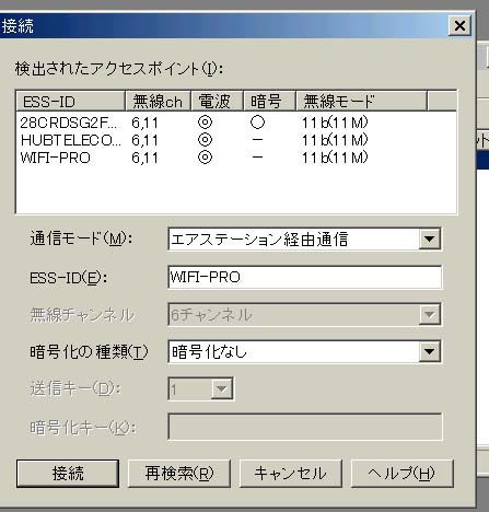 合計3つ検出された。一番上は暗号化されている。下2つは暗号化されていない。HUBTELECOは2005年1月15日までは無料と無料と表示されていた。有料であった |