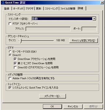 WnXPの『コントロールパネル』を開いて『Quick Timen』の『詳細』で『Direct 3Dアクセラレーション・・・』のチェックをはずすと正しく表示される。