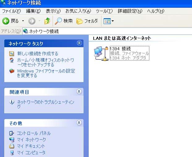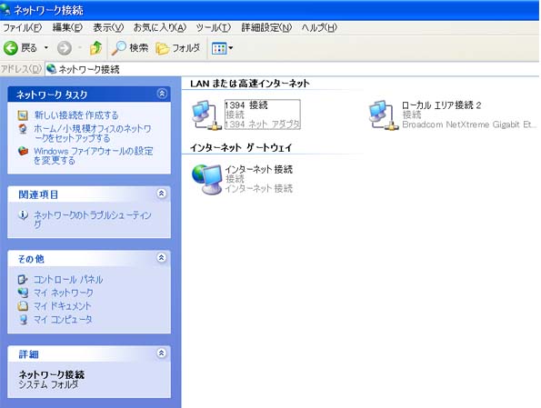 追記)2008.11.14 CDROMが到着後イーサネットドライバインスツール後の表示画面 ![]() ローカルエリア接続とインターネット接続が表示されている。 |