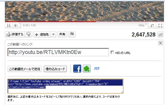 最近YouTubeのホームページへの埋め込みコードの表示が変更されて困ってしまった。