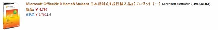 | 「Microsoft Office Home and Student 2010」という製品が日本以外で発売されていることを知った。 これにはWord、Exce、,Powerpoint、Onenoteが入っている。 これは非商用(つまり個人で私的に使う)で使用し、3台のPCまで使用可というもの。