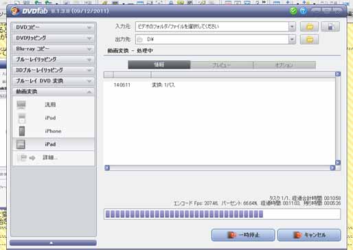 | DVDFabを使うのがもっとも簡単で楽なようだ。 ※追伸 2012.06.03 実際にiPadで見た感想だが、画面の反射がきつすぎて映り込みがあり、非常に見にくく、目が疲れる。 パソコンの画面のほうが反射が少なくてみやすい。 iPadの視聴には少し問題あり。 |