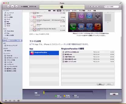 iPhoneをクリックし、アプリの『着信音パラダイス』をクリックすれば左側に選択した新しい着信音のリストが表示される。 |