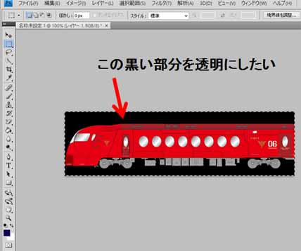 背景の黒い部分を透明にしたい。