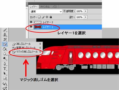レイヤー1だけだとマジック消しゴムが使えない。