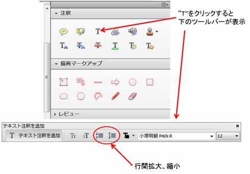 ![]() ”表示”を選択し、”注釈”さらに”注釈”を選択すると文字入力が出来る。 |