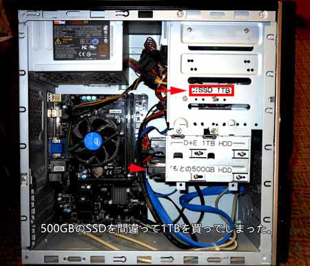 クラスタもやっと収まったようなので気分転換に予定を繰り上げデスクトップパソコン(仕事用)のHDDをSSDに換装。
